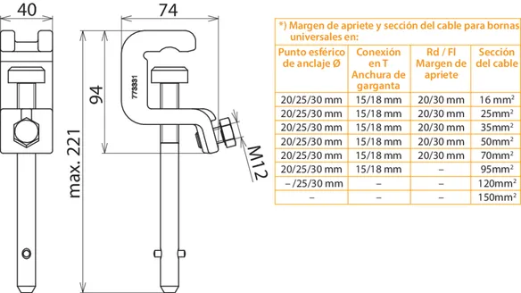 | Para sección de cable Cu | 16 ... 95 mm2 |