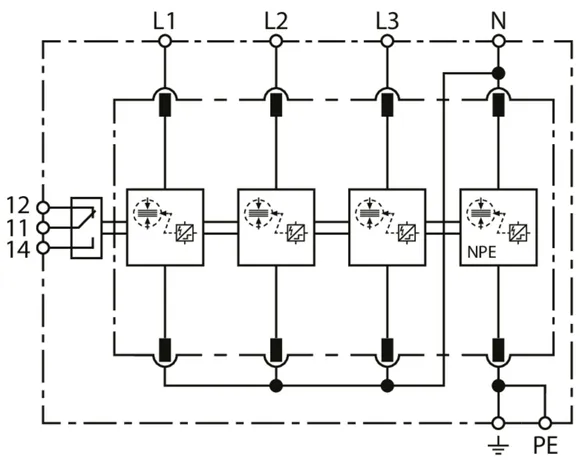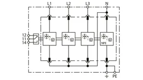 | Corriente de choque de rayo (10/350 µs) [L1+L2+L3+N-PE] (Itotal ) | 100 kA |