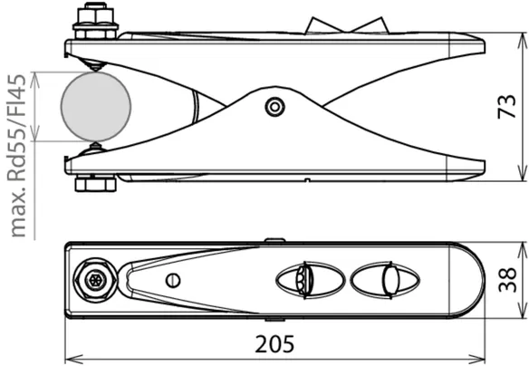 | Margen de apriete Rd/pletina | hasta Ø55 / hasta 45 mm |