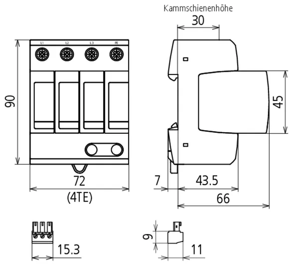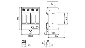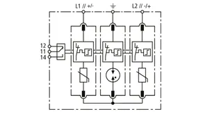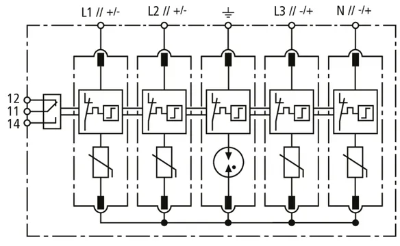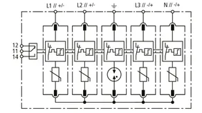 | Corriente máx. de descarga (8/20 µs) (Imáx ) | 30 kA (L-PE) / 40 kA (L-L) |