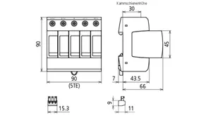 | Máx. protección contra sobrecorrientes aguas arriba del descargador | 125 A gG (AC) / 80 A gPV (DC) |