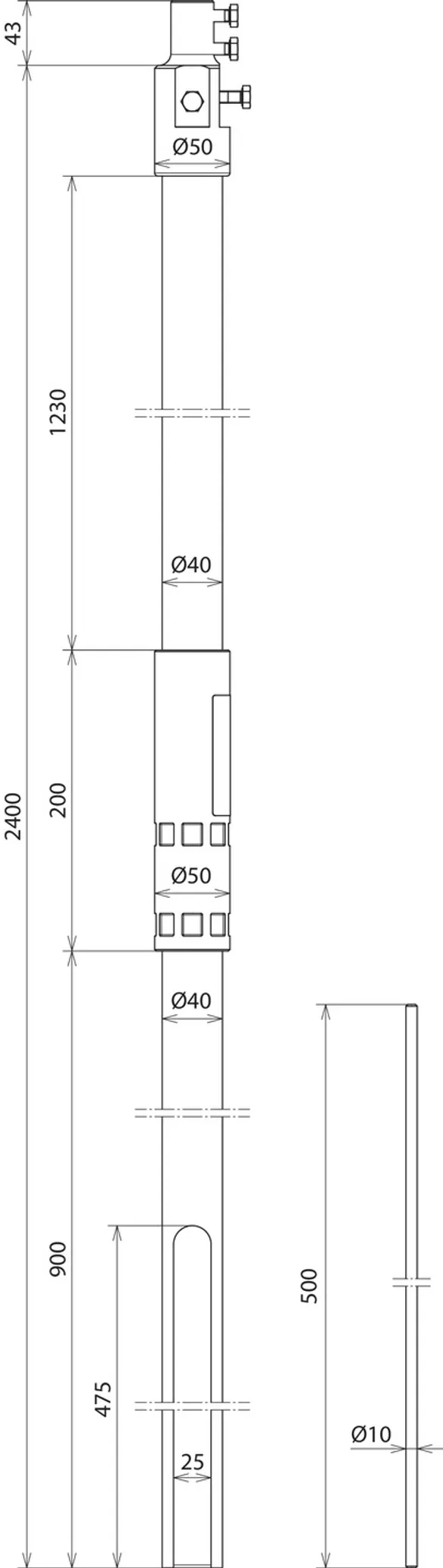| Longitud de la punta captadora | 500 mm |