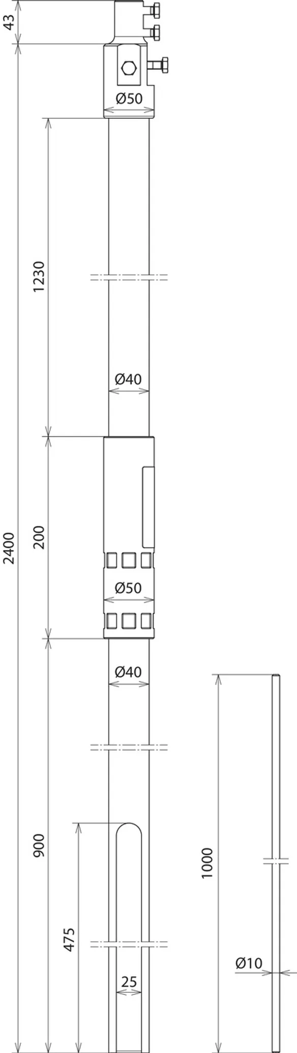 | Longitud del tubo autosoportado | 2400 mm |