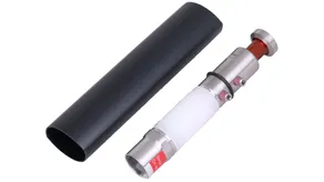 Dos elementos de conexión como piezas de cabeza del cable HVI light plus en ambos extremos. Un elemento de conexión para realización del terminal del cable en el tubo autosoportado (elemento terminal) y elemento de conexión para conectar con otras partes de la protección externa contra rayos o con instalaciones de tierra (incluye dos tubos termorretráctiles).