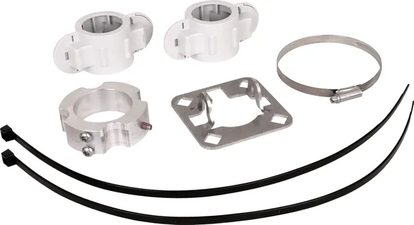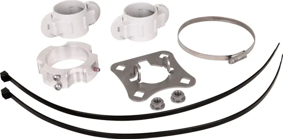 Set de fijación para el montaje del cable HVI light plus a tubos autosoportados HVI de Ø50 mm; consta de placa de conexión y anillo de fijación con abrazadera de apriete INOX para conexión terminal (incluye cuatro medias piezas de sujeción de plástico y dos bridas de cable).