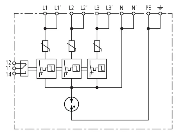 | Corriente de choque de rayo (10/350) [L-N]/[N-PE] (Iimp ) | 12,5 / 50 kA |