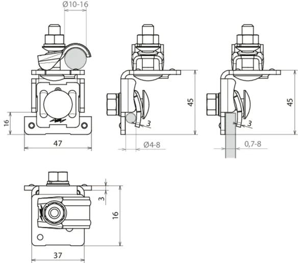 | Conexión entre conductores de cortocircuito | Ø16 mm / Ø16 mm |