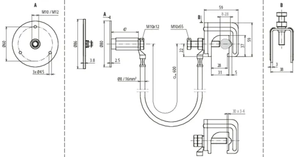 | Conexión atornillada del punto de anclaje de toma de tierra | M10 / M12 |